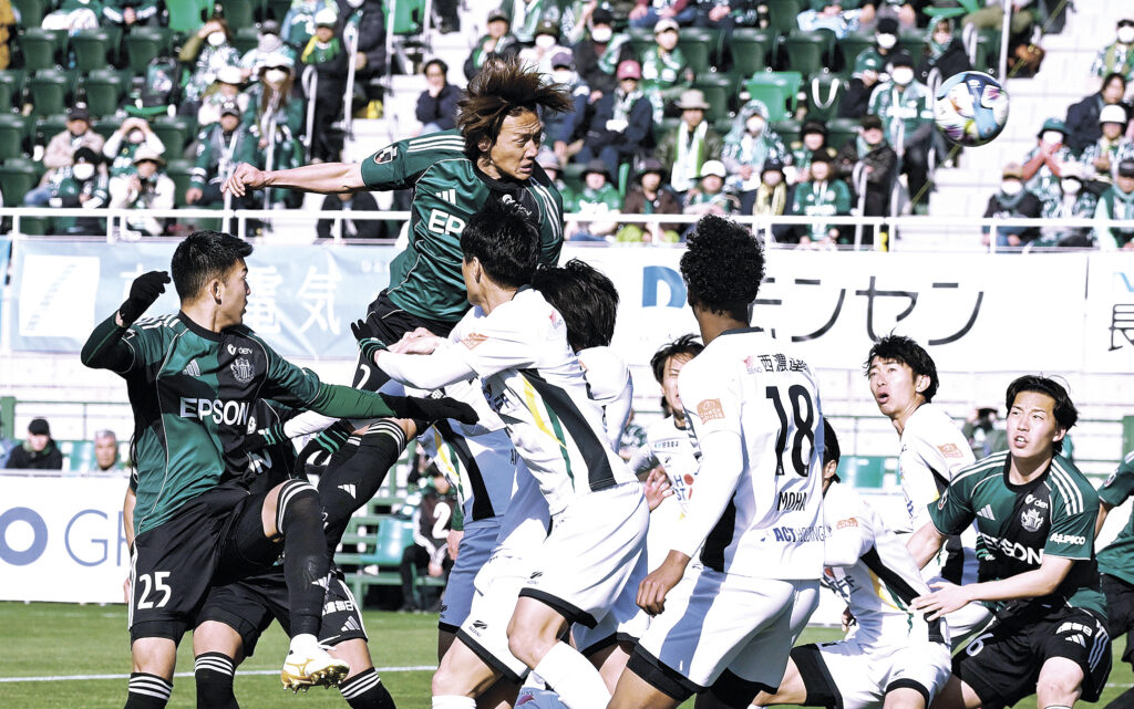 サッカーJ3松本山雅FCは明治安田J2・J3百年構想リーグ第7節の21日、松本市のサンプロアルウィンでJ3FC岐阜と対戦し、2―2の末にPK戦で勝利を収めた。前節終了時点でEAST―B2位と好調の岐阜を下して3連勝。8863人が来場したホームスタジアムが歓喜に包まれた。